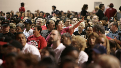 Union members from the casinos that haven’t settled arrived by car, bus and on foot to vote and participate in the pep rally-like atmosphere.