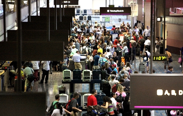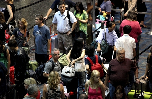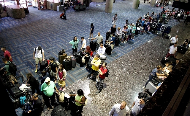 Lines snaked around the ticketing areas of McCarran International Airport for a couple of hours Thursday morning when a computer malfunction crashed the passenger processing program.