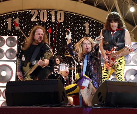 Even throwbacks such as foul-mouthed comedian Andrew "Dice" Clay and big-hair rock band Slaughter were on hand to throw out 2009.