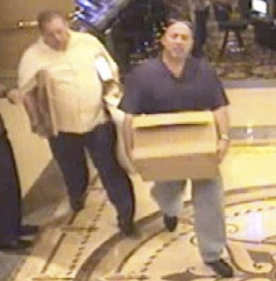 Detectives were still searching for two unidentified men seen on hotel camera footage carrying boxes that police believe had some of the collectibles taken during the robbery.
