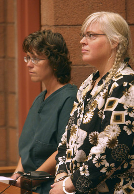 The two 40-year-old mothers seemed out of place among the hardened criminals and other men in blue jail suits Wednesday.