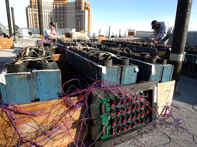 By the time the clock strikes midnight, the Fireworks by Grucci team will have spent the better part of five days atop seven Strip hotels setting up what's billed as the largest New Year's Eve fireworks show in the world.