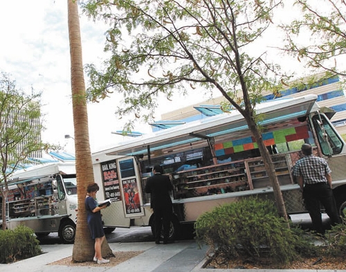 Food trucks vying for space on public streets in downtown Las Vegas would be consigned to special parking spaces under an ordinance proposed Tuesday.