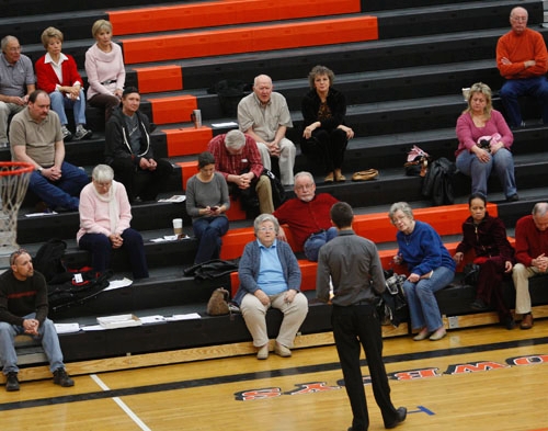 8:53 a.m. Confusion set in as some caucus participants couldn't figure out which classrooms they were to go to at Green Valley High School in Henderson.