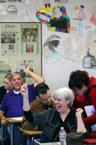 9:33 a.m. Caucus participants crammed into a tiny government classroom at Green Valley High School.