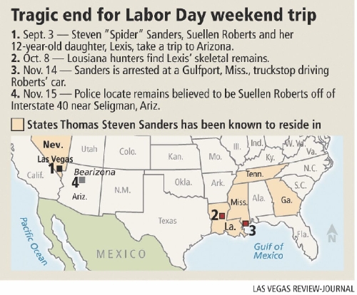 In Nevada, Sanders, 53, met Roberts and her daughter a few months ago at a storage facility in Las Vegas where she kept some possessions and where Sanders worked, said Roberts' mother, Mary Woodburn.