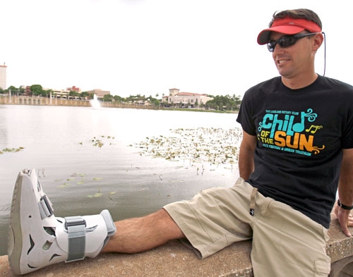 Halfway through a 5K run in January, he felt his right foot go numb, but he pushed on and finished the race. He saw a doctor and got a steroid shot, but the pain would not quit. He went to see another doctor, who took an X-ray and told him he had a stress fracture.