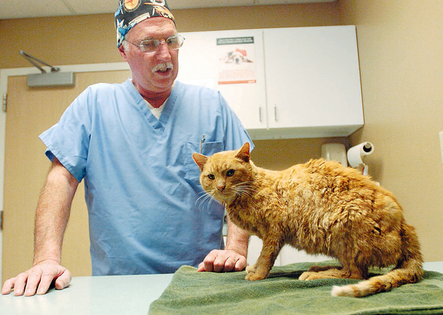 One veterinarian assessed the cat this way: “If they truly have nine lives, he probably has three left.”
