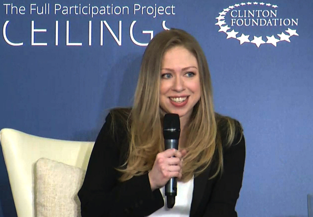 “I certainly feel all the better whether it’s a girl or a boy that she or he will grow up in a world full of so many strong young female leaders,” Chelsea Clinton told the audience.