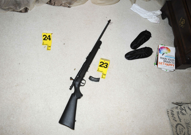 Included were photographs of the Lanza home showing numerous rounds of ammunition, gun magazines, shot-up paper targets, gun cases, shooting earplugs and a gun safe with a rifle in it.