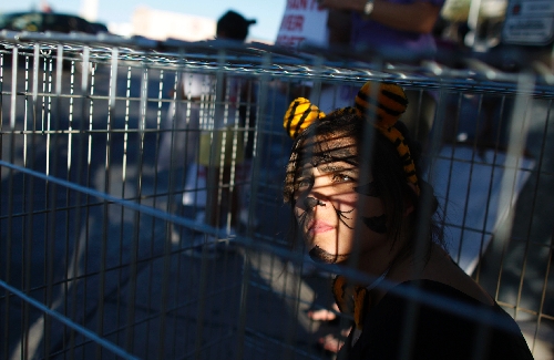 Outside of the Orleans Arena on Thursday evening, animal rights activists protested the opening night of the Ringling Brothers and Barnum & Bailey circus performance to celebrate the 200th birthday of P.T. Barnum.