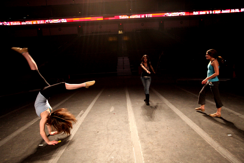 Fraternal twins Sydney Eastwood and Kellie Eastwood, 14, a gymnast and dancer respectively, are performing in the Las Vegas Circus Spectacular at the Orleans Arena in Las Vegas This weekend. Invited by a relative who owns the circus, show business is in the high-schoolers blood–their parents met as performers in Jubilee.