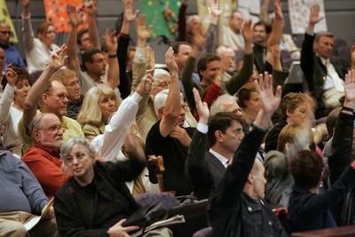 On Wednesday, close to 200 people showed up at the council meeting. When asked by Goodman to raise their hands if they supported continuing the legal fight, arms shot up in a wave.
