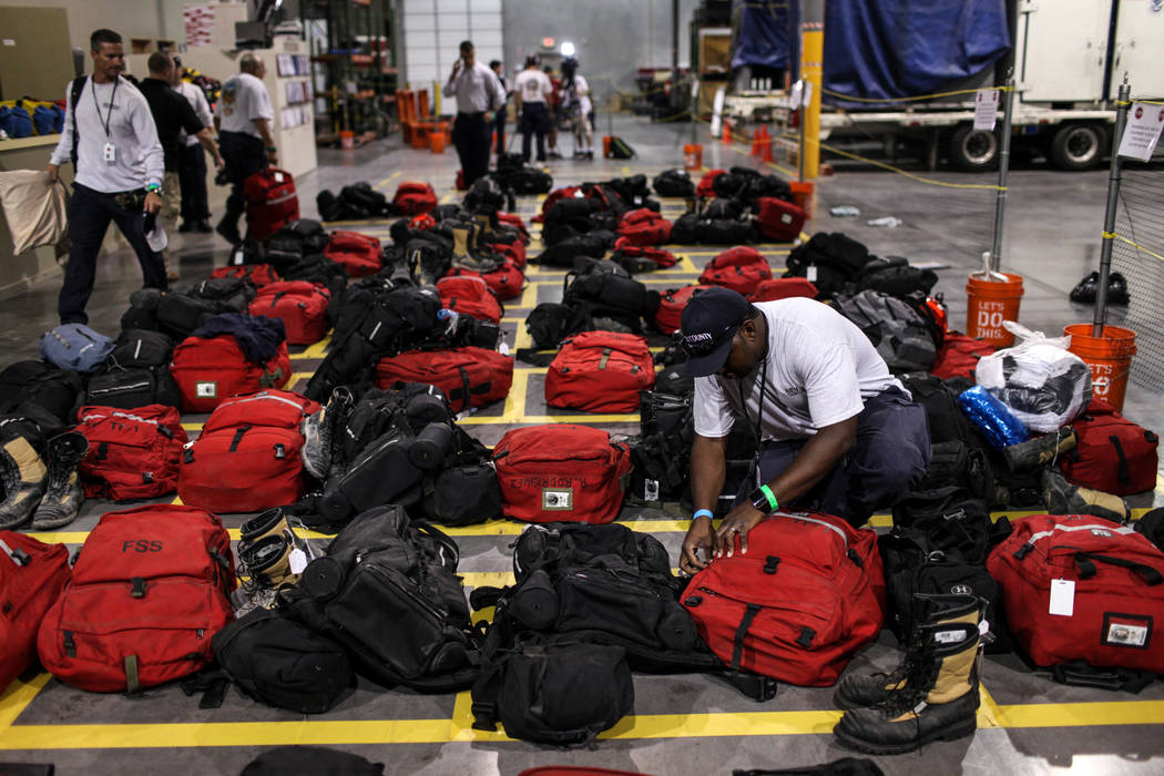 Earlier Thursday night, a team consisting of 70 rescue personnel, 10 drivers and four service dogs met at Task Force-1 headquarters at 3955 N. Pecos Road, near Craig Road. From there, civilians, local firefighters, doctors and other partner agencies loaded equipment and prepared to leave — some not even 24 hours after returning from their Hurricane Harvey deployment.