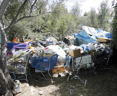 There were at least another 40 shopping carts scattered across the half-acre lot, most still stuffed with items discarded by strangers.