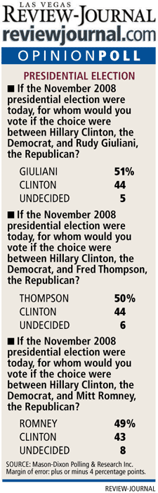 If Nevada's presidential nominating caucuses were held today, the winners would be Hillary Clinton on the Democratic side and Rudy Giuliani among Republicans, according to a new Review-Journal poll.