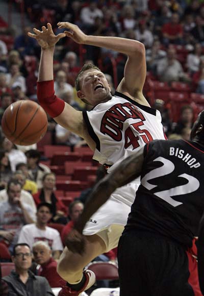 The Rebels, accustomed to dominance at the Thomas & Mack Center for the past three seasons, were upset again, this time 67-65 by Cincinnati.