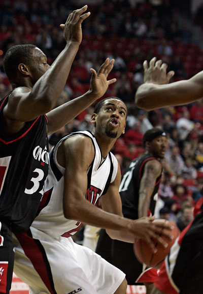 Joe Darger's 3-pointer with 4:41 to go put the Rebels ahead 59-57, but the Bearcats responded with an 8-0 run highlighted by Alvin Mitchell's two closely guarded 3-pointers.