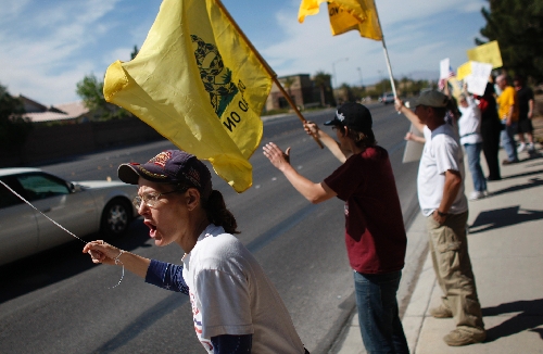 In Las Vegas, about 300 people attended a Tea Party rally at Sunset Park on Thursday afternoon. A handful of mostly Republican politicians, including gubernatorial candidate Mike Montandon and U.S. Senate candidate Danny Tarkanian, expressed opposition to higher taxes and government spending.