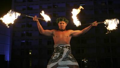 The fire-knife dance features intricate rotating and spinning moves, which grow ever faster as the accompanying Polynesian drumming reaches a crescendo. If it looks dangerous, it is. Tuitama has ripped open an arm and burned his mouth, face, hands, neck and soles of his feet.