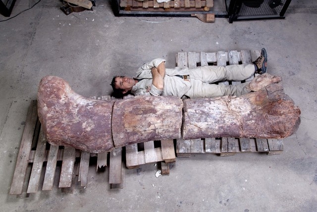 Paleobiologist Paul Upchurch of University College London believes size estimates are more reliable when extrapolated from the circumference of bones. He said this femur is a whopping 43.3 inches around, about the same as the Argentinosaurus’ thigh bone.