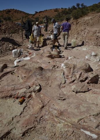 Along with this titanosaur, they have found the fossils of seven other dinosaurs, and have only uncovered an estimated 20 percent of the find. For now, the rest have been covered with plaster to protect them from the Southern Hemisphere winter and excavations will resume in the spring.
