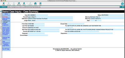 Other information available for the first time includes: the trial date and date of the next hearing in the case; dates and summarized minutes of each hearing in the case dating back to 1998; the date and title of each motion in the case; the fact that case activity includes 1,851 entries for hearings, motions and filings; and the fact the case had been closed and reopened at some point.
