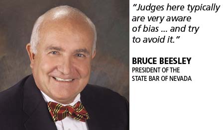 State Bar of Nevada President Bruce Beesley said it's very common for parties to complain that a judge is biased, but it's rarely true. Beesley said Nevada judges usually recuse themselves when even a hint of bias arises.