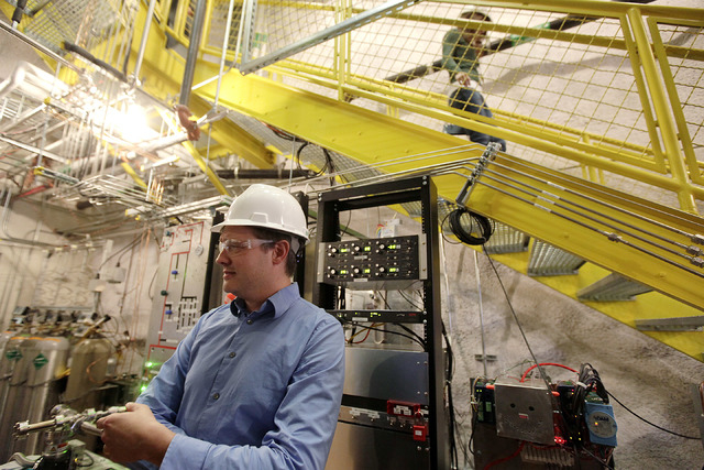 The lab, in a bright, clean space at the end of an old mining tunnel filled with pipes and electric cables, is reached by a 10-minute ride in an elevator that once carried miners. Gaitskell and McKinsey said the experiment has far less radiation interference from cosmic rays than any other dark-matter lab.