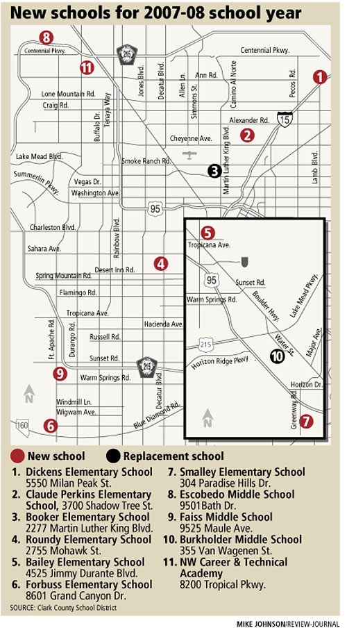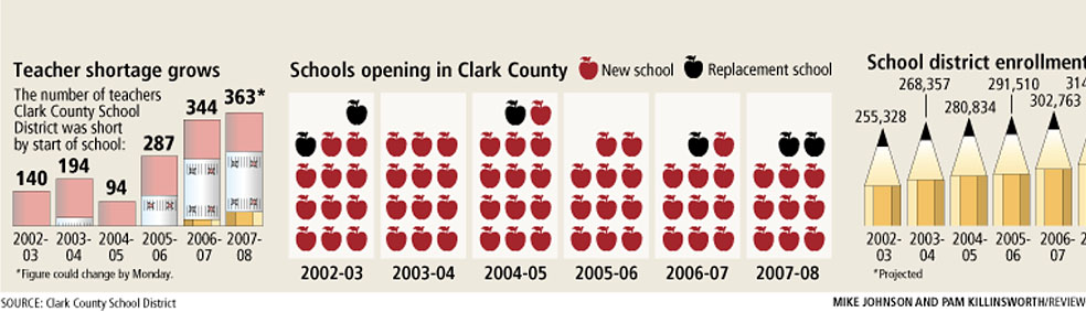The Clark County School District will begin the school year Monday short at least 363 teachers, a shortfall district officials attribute largely to the rapid growth of the Las Vegas Valley.