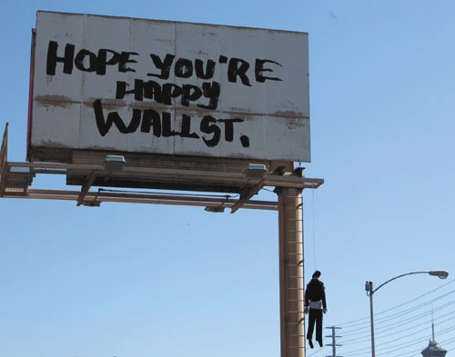 But distracted drivers and defenders of Wall Street's honor can rest easy. The messages have been removed from the billboards.