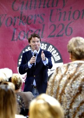 He urged the union to "stand strong" in its current negotiations with casinos because workers in the rest of the country are watching.