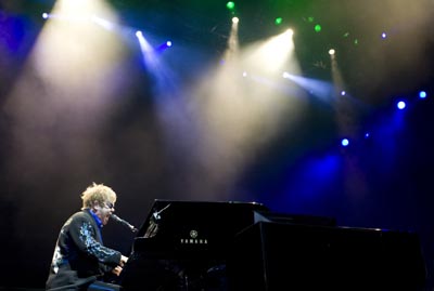 TEL AVIV, Israel (AP) -- Pounding his piano in blue-tinted sunglasses before nearly 50,000 screaming fans, Elton John took center stage in a battle over Israel’s image.