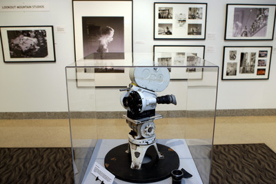In addition to many historic still photos taken at the test site, Kuran's exhibit features a video clip and camera equipment used by atomic photographers. The 35mm high-speed Mitchell camera he used for "The Empire Strikes Back" is also on display.