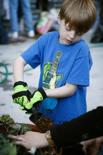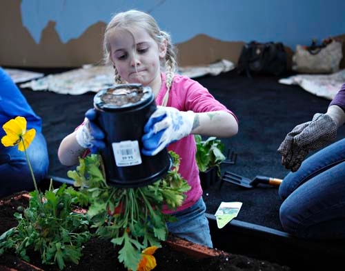Before joining several dozen volunteers and families in initial preparation of the soil and planting of some flowers, Desean Courtney took in the hopeful scene. Her 12-year-old son, Karon, is being treated for Hodgkin lymphoma.