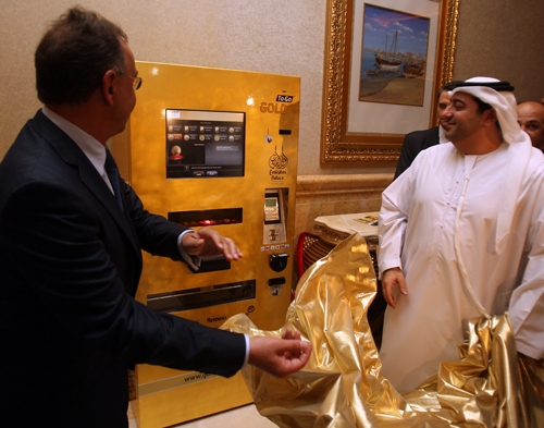 BOCA RATON, Fla. -- If you're a shopper looking for something sparkly to put under the Christmas tree, you could skip the jewelry. A new ATM at an upscale mall in Florida's swanky Boca Raton dispenses shiny 24-carat gold bars and coins. A German company plans to install the machine Friday. Shoppers insert cash or credit cards and use a computer touch-screen to choose the weight and style they want. The machine spits out the gold in a classy black box with a tamper-proof seal.