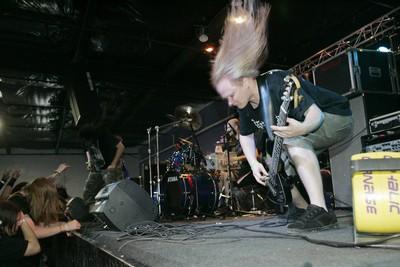 Near the end of a particularly forceful set from Las Vegas deathcore nasties Misericordiam, the band's red-faced singer hurled himself into the crowd and was soon swarmed by dozens of kids climbing onto his back, all of them very much aware that they were as much a part of this wild-eyed exercise as the dudes clutching the instruments.