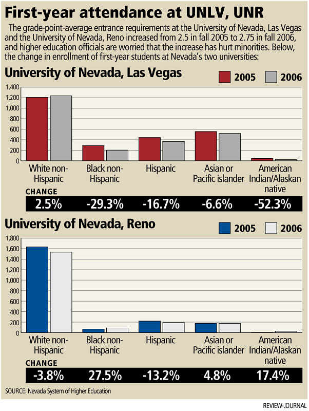 The University of Nevada, Las Vegas' minority enrollment was hit particularly hard when the required GPA rose from 2.5 to 2.75 last year.
