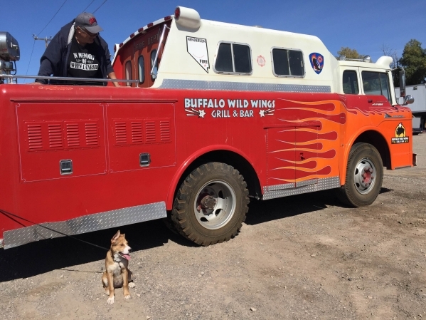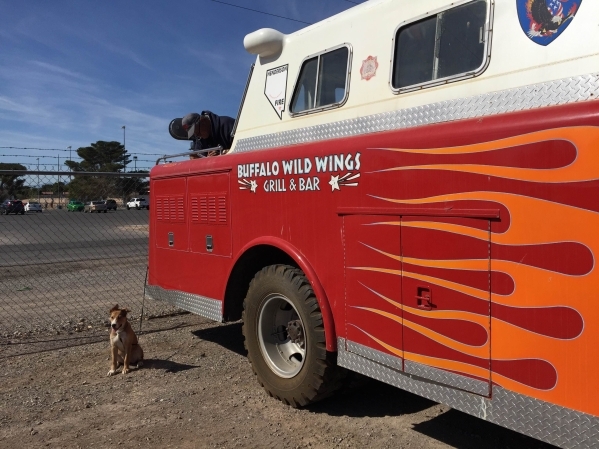 The firetruck in question isn't what you typically would find in a firehouse. The restaurant chain Buffalo Wild Wings painted it for the city of North Las Vegas. It's got orange flames on its side and sports the Buffalo Wild Wings logo.