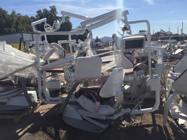 Up for grabs are a deep fryer, shiny telephone booths — one complete with a rain-damaged phonebook — and 16 dental chairs from the University of Nevada, Las Vegas.