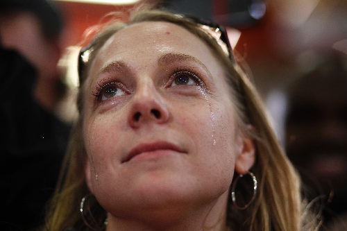 "Yes!" yelled those gathered, cheering the youngest of Romney's five sons.
