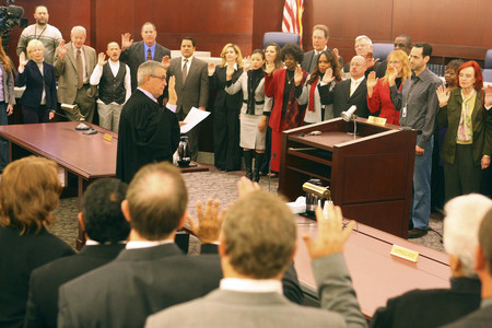 Attorneys, including senior judges, and real estate professionals make up the bulk of new mediators. Hardesty said the decision to hold the swearing-in ceremony was made to "impress upon the public just how important this is. Very high ethics are involved," he said. "You are neutral, not an advocate."