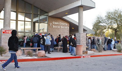 Bundled up on a recent Sunday in a brown winter coat, boots, gloves and a scarf covering her head, Valerie Lucas still shivered as a late afternoon wind ripped across the Clark County Social Services building parking lot.