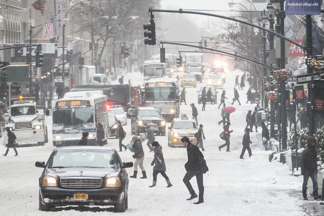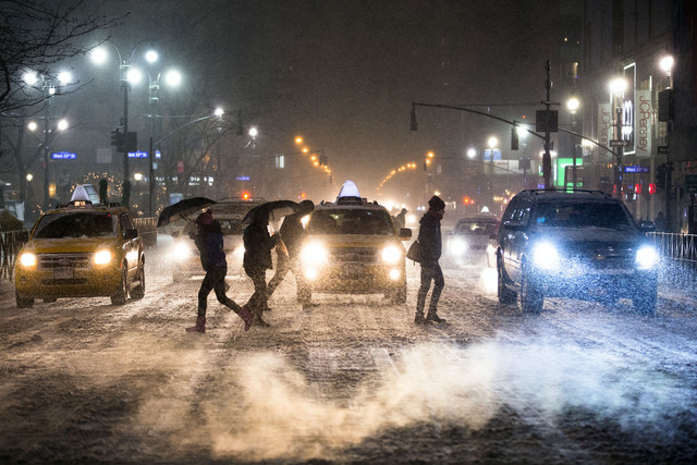 The brunt of the storm began late Thursday in parts of New England and New York state. Forecasters warned that gusts of up to 30 miles per hour could bring wind chills to minus 25 degrees, cold enough to cause frostbite in about 30 minutes or less, with some of the coldest temperatures expected Friday night. The weather service said people should dress warmly to avoid hypothermia and cover all exposed skin.