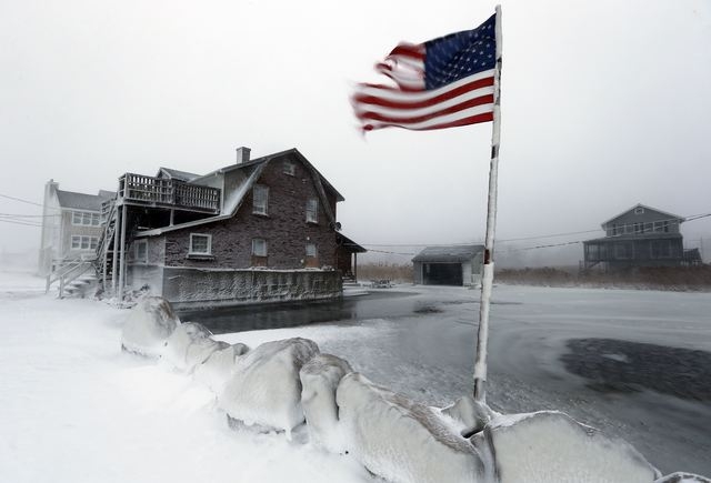 Sonja Keller of Scituate, Mass., was out walking her labradoodle puppy near the ocean as waves came over a seawall. Because of high winds, the snow was knee deep in some places and barely visible in others. Her children, ages 4, 6 and 8, had gotten in almost a full day of school on Thursday but were off again Friday.