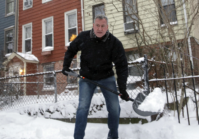 De Blasio, who as public advocate in 2010 criticized his predecessor Mayor Michael Bloomberg for his handling of a large snowstorm, dispatched hundreds of plows and salt spreaders on the streets as soon as the snow started falling Thursday night.