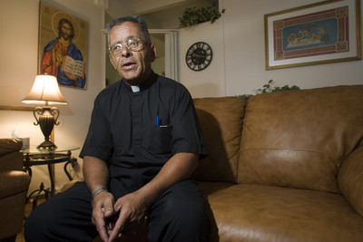 "Me being a priest, it's weird -- a topless bar owner, a politician and a priest," he said.