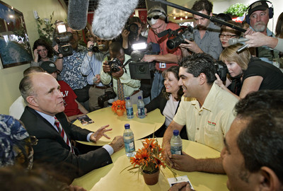 For some reason, Giuliani, when he comes to Nevada for something other than picking up checks, likes to conduct mock-spontaneous visits to local businesses. Last time, it was a Target in Summerlin, where he studied the aisles and bought a few sundries.