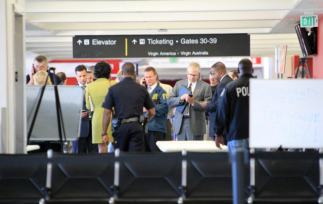 Airport police union chief Marshall McClain said the two officers assigned to Terminal 3 still were in position to quickly respond to the shooting. He said he’d spoken with both and confirmed one was “going to the restroom or coming back from the restroom” and the other was headed out on a meal break but still within his patrol area.