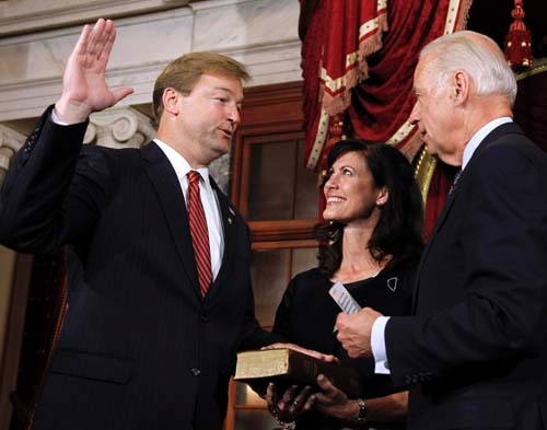 But for a few minutes on an otherwise quiet Monday afternoon, politics took a timeout as Heller joined the Senate club. Republican leaders Mitch McConnell of Kentucky, Jon Kyl of Arizona, John Cornyn of Texas and Lamar Alexander of Tennessee turned out for the swearing-in, as did Sen. Roger Wicker, R-Miss.